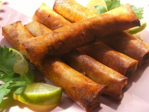 Couper les feuilles de brique en deux mettre la préparation en boudin dedans, puis rabattre les cotes et rouler. Utiliser du blanc d œuf pour coller, et faire dorer les feuilles.