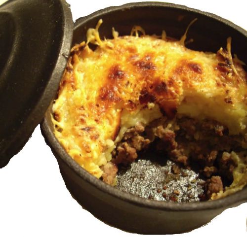 Mettre dans un plat a gratin la préparation, la recouvrir de crème fraiche, puis la purée, et enfin du gruyère râpé, pour obtenir votre hachis parmentier