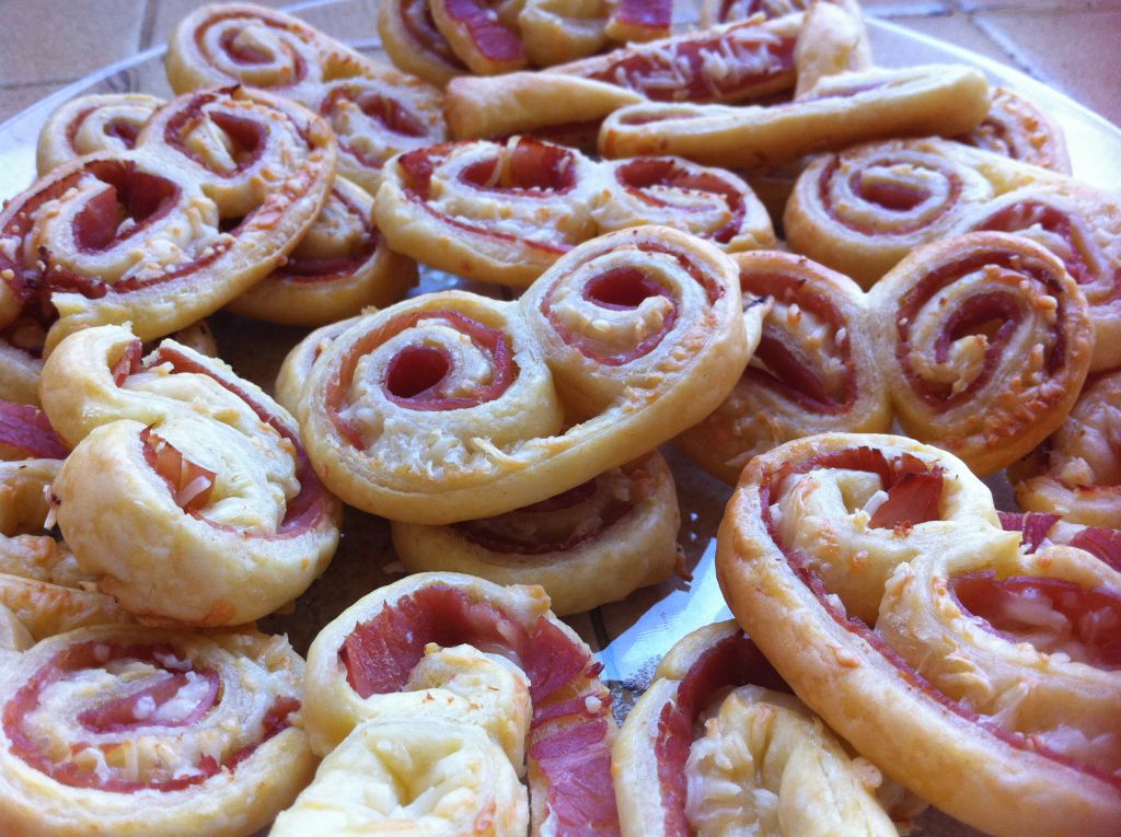 Rouler la pate par les extérieurs jusqu’au milieu. Laisser dans le papier sulfurise et mettre au congèle 30 mins afin de pouvoir couper la pate en petits palmiers environ 0.5 a 1 cm d épaisseur