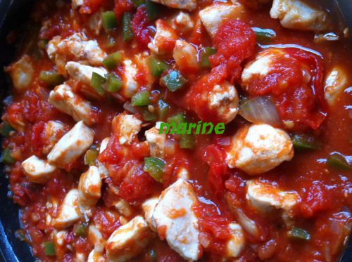 Couper les blancs de poulet en dés équitable puis les faire cuire avec la sauce.HUMMM la bonne odeur du poulet basquaise avec un bon riz