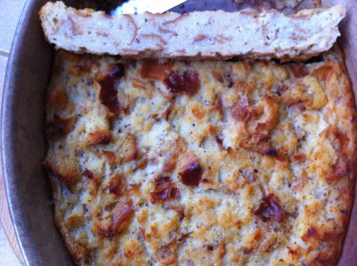 Dans un saladier mettre la brioche en tranche puis y verser la préparation une fois le lait bien chaud.