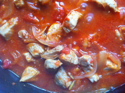 couper votre porc en petits cubes. Dans une sauteuse , mettre du beurre , et une cuillere d huile , puis les des de porc, y mettre le curry, bien melanger. Emincez les oignons puis dans la sauteuse .Une fois bien melanger , mettre la boite de tomate ,saler a votre convenance , mélanger et laisser mijoter 40 mins environ