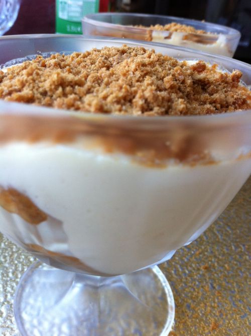 Ecraser 6 spéculoos en poudre puis recouvrir la crème de façon a faire une croute.